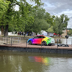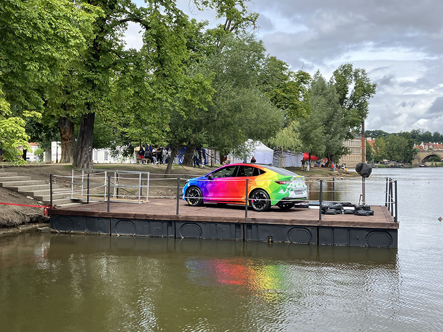 Kompletně zrekonstruovaný karavan pro využití na výstavách, předvaděcích akcích a různých promoakcích. Lze využít i jako malé podium. Jedna strana karavanu lze otevřít až do délky 4,5m. Vyroben roku 1978, přestavěn 2018.